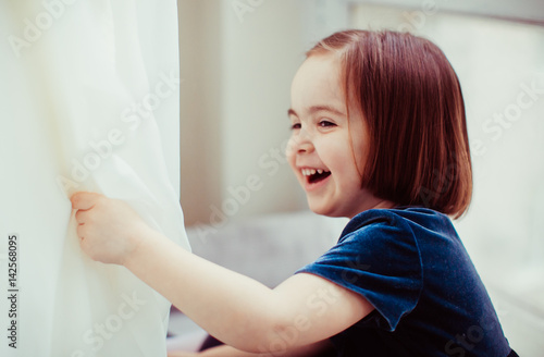 © pyrozenko13, Fototapeta premium The pretty girl sits on the window-sill