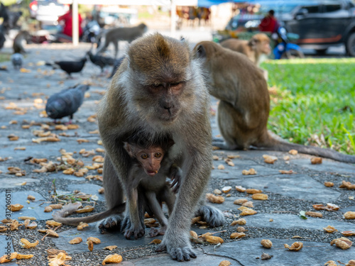 Obraz premium The primate and baby in park. monkey