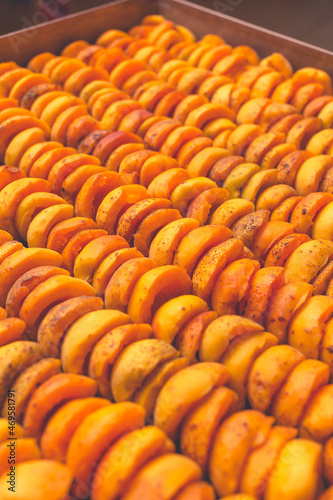 © BearOK, Fototapeta premium The process of home cooking dried fruits in an electric dryer.
