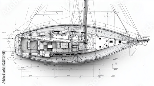 Obraz premium The professional blueprint of a high-end yacht, a classic sailboat, a...