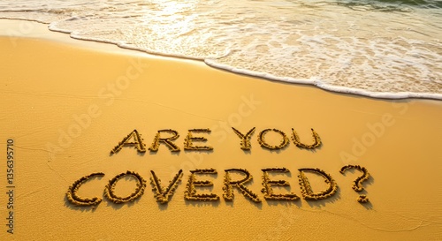 Fototapeta premium The question are you covered is written in the sand