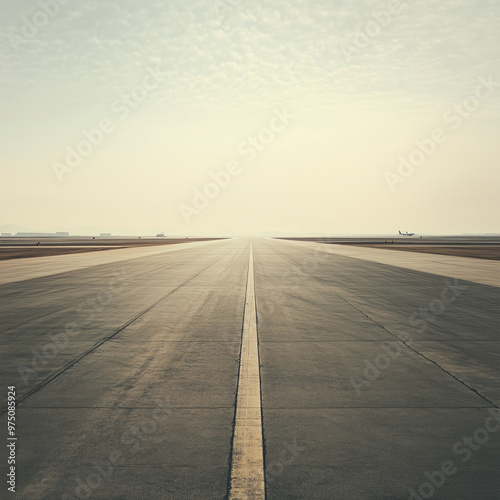 Fototapeta premium The Quiet Runway: Wide Open Airport Runway Without a Plane in Sight