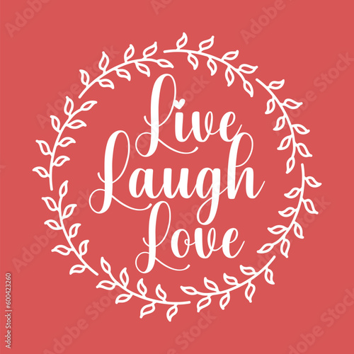Fototapeta premium The quote 'Live, Laugh, Love' is designed in Laurel leaf and Wreath frame...
