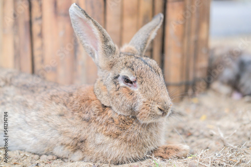 Fototapeta premium The rabbit family is having fun, walking, eating, sleeping on the ground and...