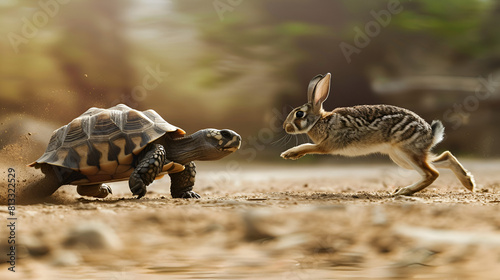Naklejka premium The Rabbit or the Turtle ,generative ai