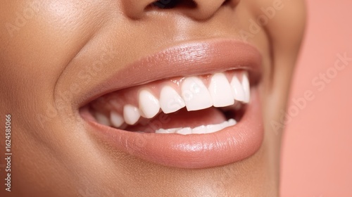 © Olena, Obraz premium The radiant smile of a woman showcasing perfect teeth and lips.