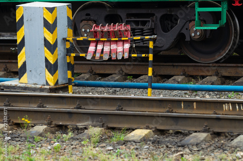 Naklejka premium The railway junction on a cloudy day. Natural light. Landscape
