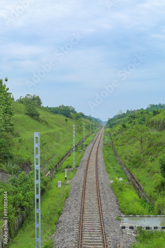 © 7G Studio, Fototapeta premium The railway line lies between the two hills