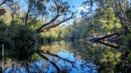 © Optimus , Fototapeta premium The rain forest is a dense, tropical woodland that thrives in humid, tropical climates. It is characterized by towering trees with thick canopies that form a lush, green umbrella overhead, providing s