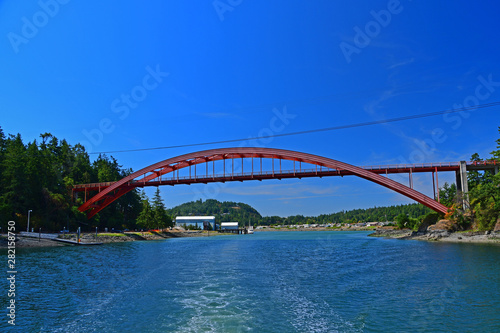 © Euskera Photography, Naklejka premium The Rainbow Bridge spanning the Swinomish Channel in La Conner, Washington