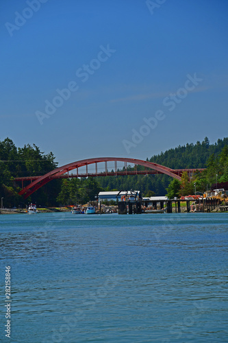 © Euskera Photography, Naklejka premium The Rainbow Bridge spanning the Swinomish Channel in La Conner, Washington