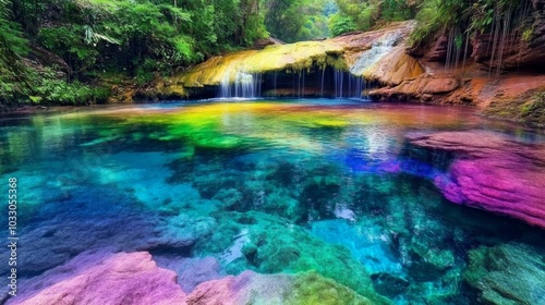 © Zaenal, Fototapeta premium The rainbow river or five colors river is in Colombia one of the most beautiful nature places, is called Crystal Canyon or Cano Cristales.