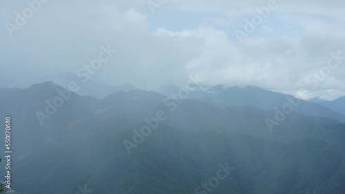 © Bo, Fototapeta premium The raining mountains view with the foggy and misty raining droplets