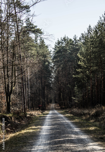 © Olga, Naklejka premium The rays of the sun on the road in the forest. Beautiful landscape. Background.