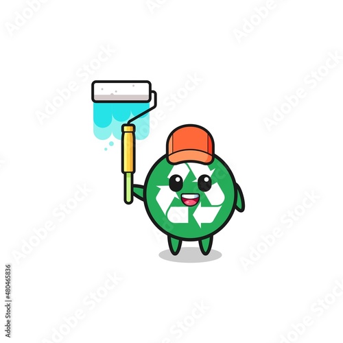 © heriyusuf, Fototapeta premium the recycling painter mascot with a paint roller