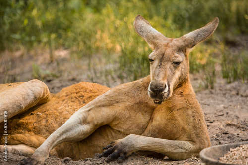 Fototapeta premium The red kangaroo is the largest of all kangaroos, the largest terrestrial mammal native to Australia, and the largest extant marsupial.