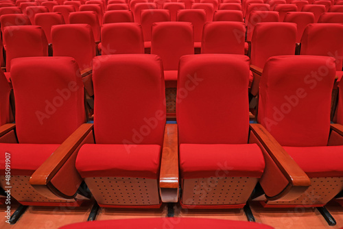 © zhang yongxin, Fototapeta premium The red row chairs are in the theater, North China