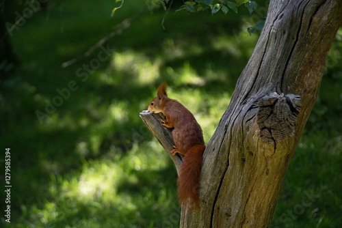 Fototapeta premium The Red Squirrel or Eurasian Red Squirrel (Sciurus vulgaris).