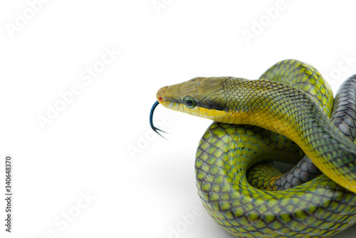 Fototapeta premium The red-tailed green rat snake isolated on white background