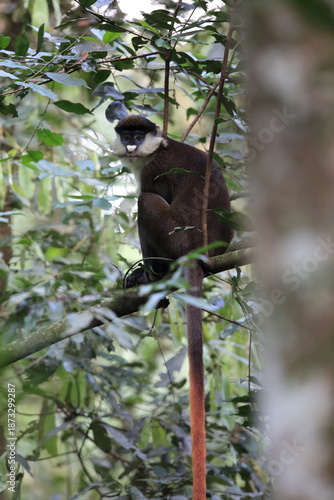 Obraz premium The red-tailed monkey (Cercopithecus ascanius), also known as the black-cheeked white-nosed monkey, red-tailed guenon, redtail monkey, or Schmidt's guenon,