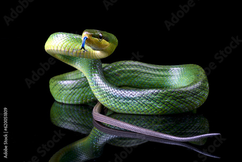 © Cavan, Obraz premium The red-tailed racer on a black background