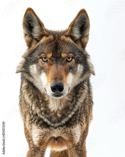 © Eyestetix Studio, Fototapeta premium the Red Wolf, portrait view, white copy space on right Isolated on white background
