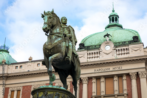 Fototapeta premium The Republic Square (Trg Republike in Serbian) with old Baroque style buildings, the statue of Prince Michael and the National Museum.
