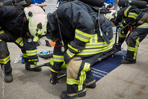 Fototapeta premium The rescue team is looking for the victim and evacuating him.