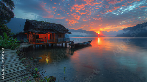 © Hovhannes, Fototapeta premium The result is a mesmerizing view of a fishing village, captured through a lens that maximizes the beauty of nature and traditional aspects.