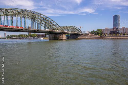 Naklejka premium The Rhine River and a Bridge of Cologne NRW Germany Europe