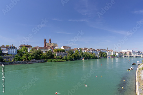 © Alexandre Prevot, Obraz premium The Rhine with the old town of Basel to the left