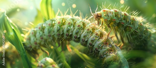 © Ilgun, Naklejka premium The rice leaf folder larvae can adapt to elevated temperatures through multi generational heat selection allowing for survival and adaptation within their environment. Copy space image