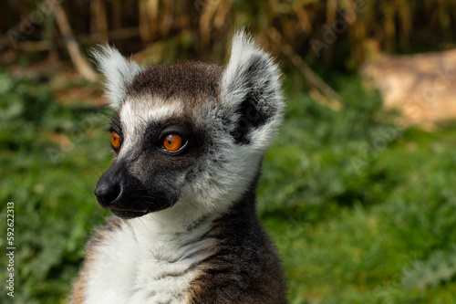 Fototapeta premium The ring-tailed lemur in a Greece zoo, Lemur catta. Close up macro photo.