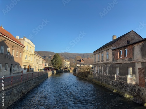 © Mykhailyna Popovych, Fototapeta premium The river flows in the middle of a small town
