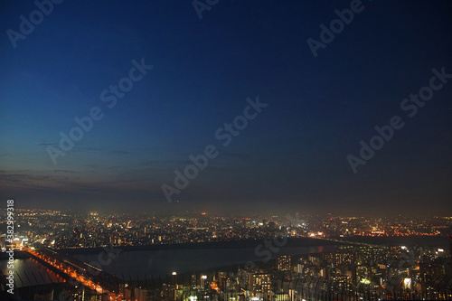 © aozora, Fototapeta premium The river of the city of Osaka, Japan and night view of the light of the town