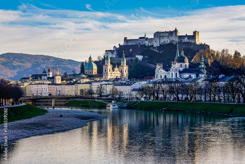 © Jake Moxon, Fototapeta premium The River Salzach glitters in winter as it flows through Salzburg