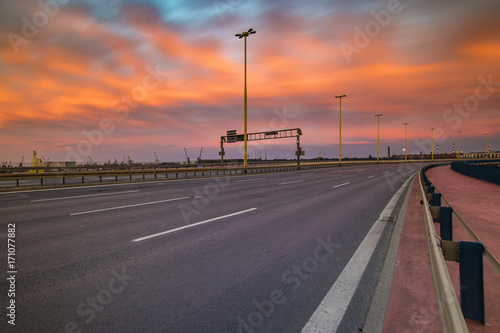 Fototapeta premium The road leading to Szczecin after sunset, traces of lights of cars