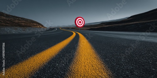 © Studio Nova, Fototapeta premium The Road Leading Toward a Distant Target Under Moody Sky at Dusk