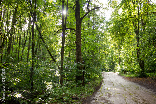 © PhotoChur, Obraz premium The road through the forest and green thickets
