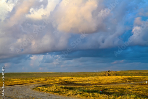 © Superzoom, Fototapeta premium The road through the sloping field before the rain.