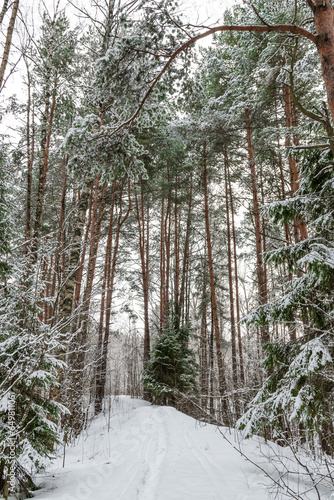 Naklejka premium The road through the winter forest