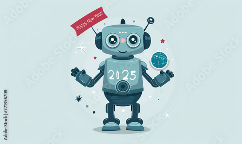 © Галина Нечипорук, Naklejka premium The robot congratulates humanity on the coming year 2025.
