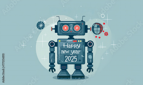 Fototapeta premium The robot congratulates humanity on the coming year 2025.