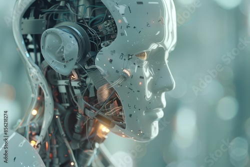 © cff999, Fototapeta premium the robot head is made up of wires and wires
