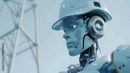 Fototapeta premium The robot, the android, is ready to perform work functions. AI Generated