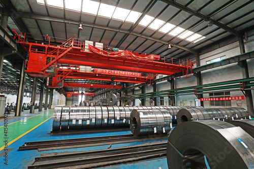 © zhang yongxin, Obraz premium The rolled strip is in the production workshop, North China
