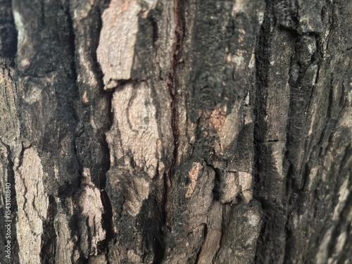© Ilhamdh, Obraz premium The rough, striped texture of tree bark, with deep vertical patterns and natural cracks, is perfect for backgrounds, natural textures, or design elements that require an organic, rustic touch.