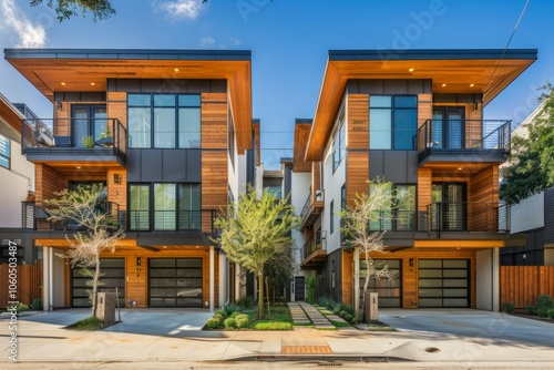 Obraz premium The row of just finished new townhouses, the Concept of buying a house vs renting an apartment. Neural network ai generated art