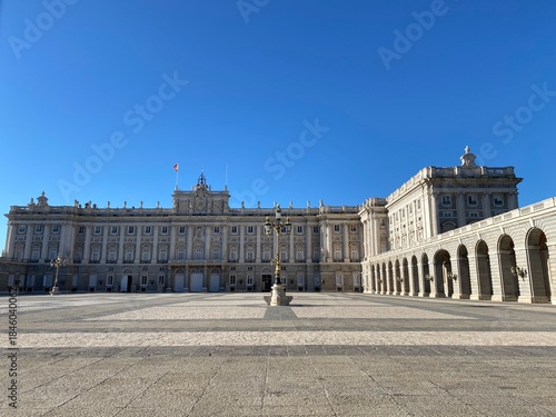 © Ian, Obraz premium The royal palace in Madrid, Spain, under a clear, blue sky