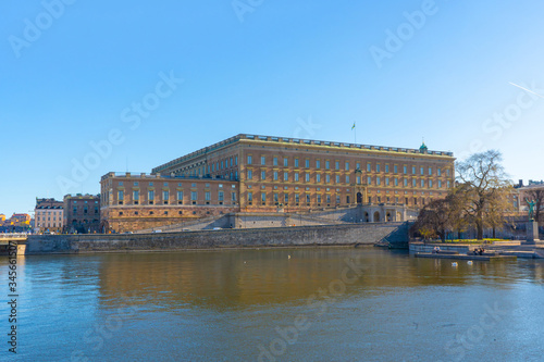 Naklejka premium The royal palace in Stockholm. Riverside view. Swedish capital